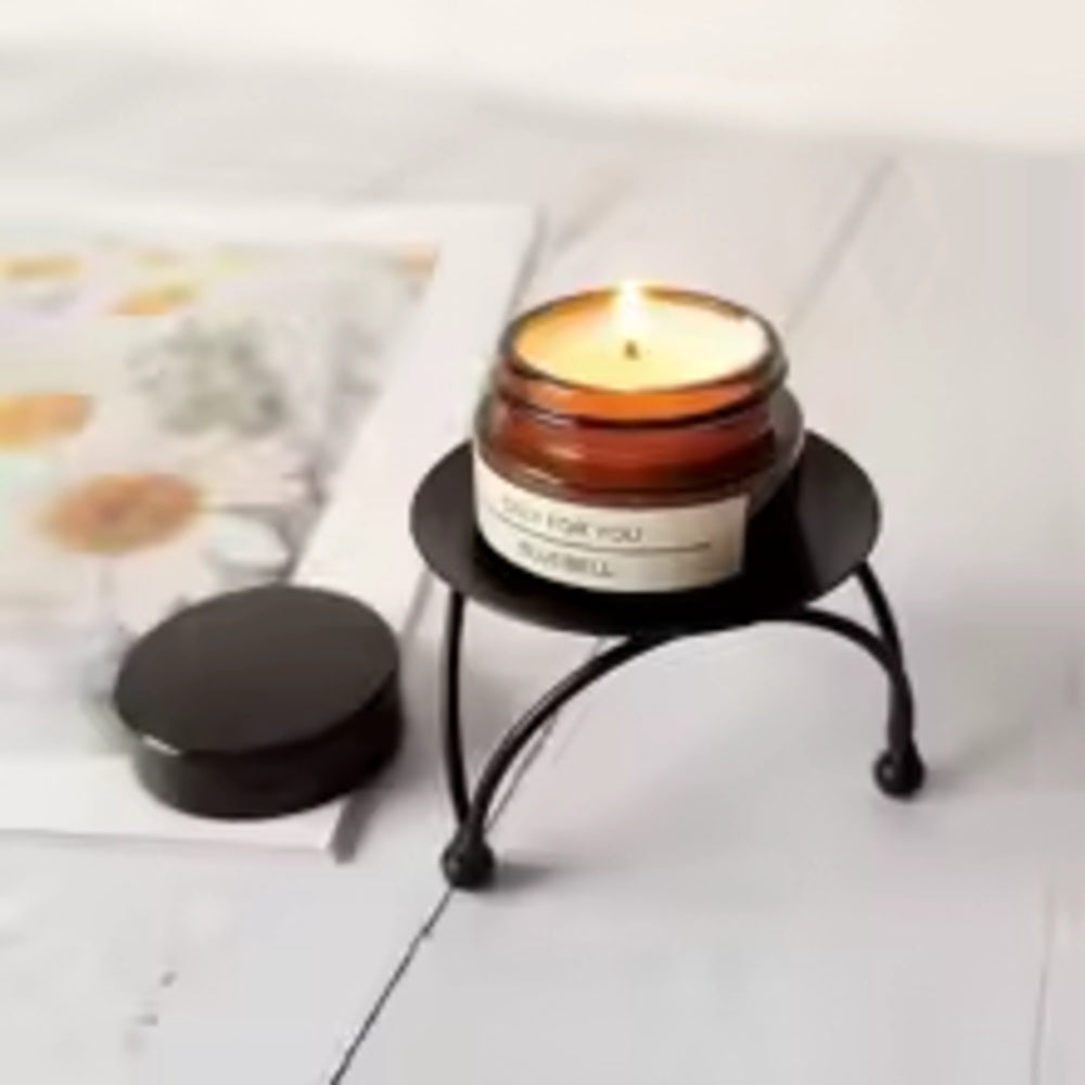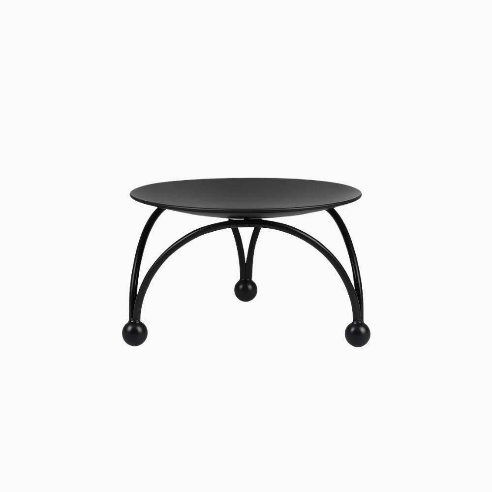 - Design: Rund ljusplatta med tre välvda ben